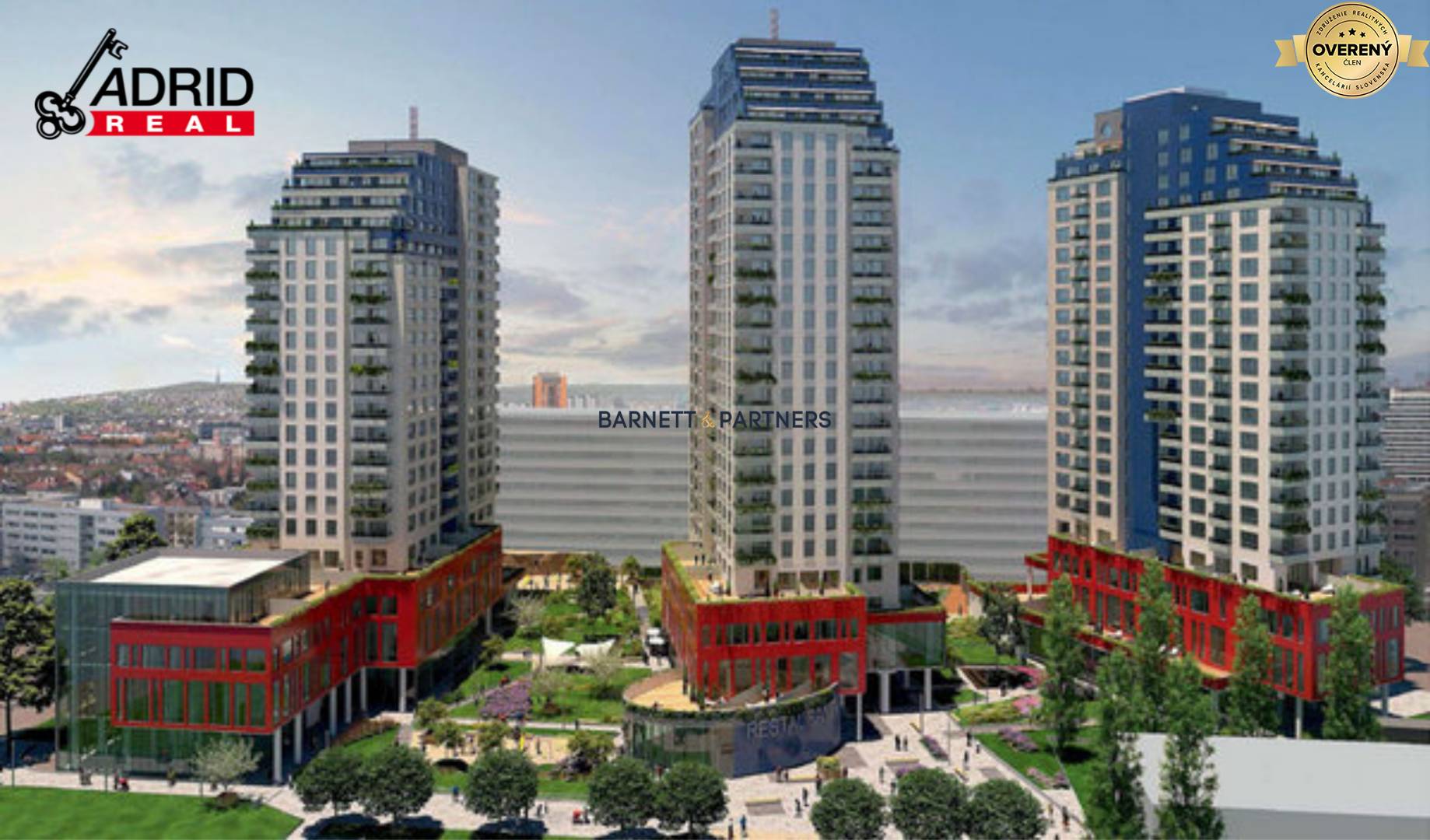 These majestic Bratislava towers are located between Plynárenská and Jarabinková streets, offer 432 flats, 117 apartments, lofts and studios, 16 retail spaces and 783 parking spaces.