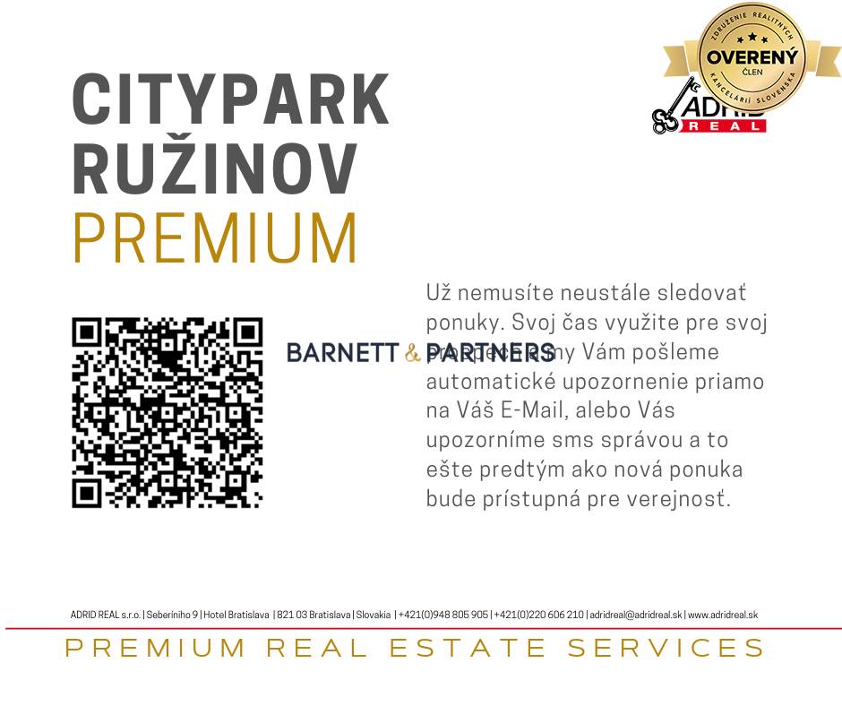 Thanks to its excellent location, this so-called greenest place Ružinov offers its future residents unlimited opportunities for leisure and relaxation. In the direct availability of your new home you will find shopping centers Eurovea, Central, or Retro and "in a jump" you get to the highway bypass, bus station, bus stop, or accompany children to school.