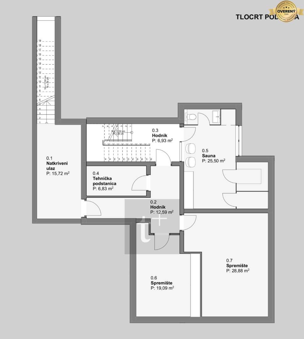 The villa is partially basement. The basement / cellar has an area of 115.54 m2 and is accessible by stairs from the outside, but also directly from the house. In the basement there is a technical room, a wine cellar, a storage room and a sauna room.