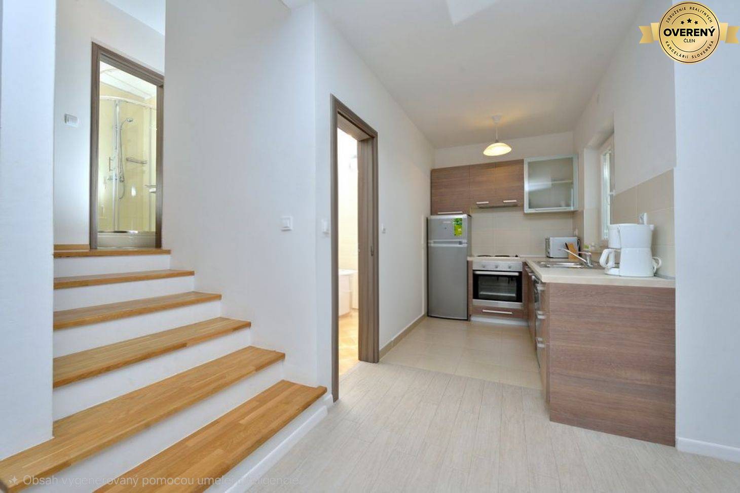 The apartment has 2 levels. On the ground floor there is a kitchen with a dining room and a living room with access to the loggia and a bathroom.