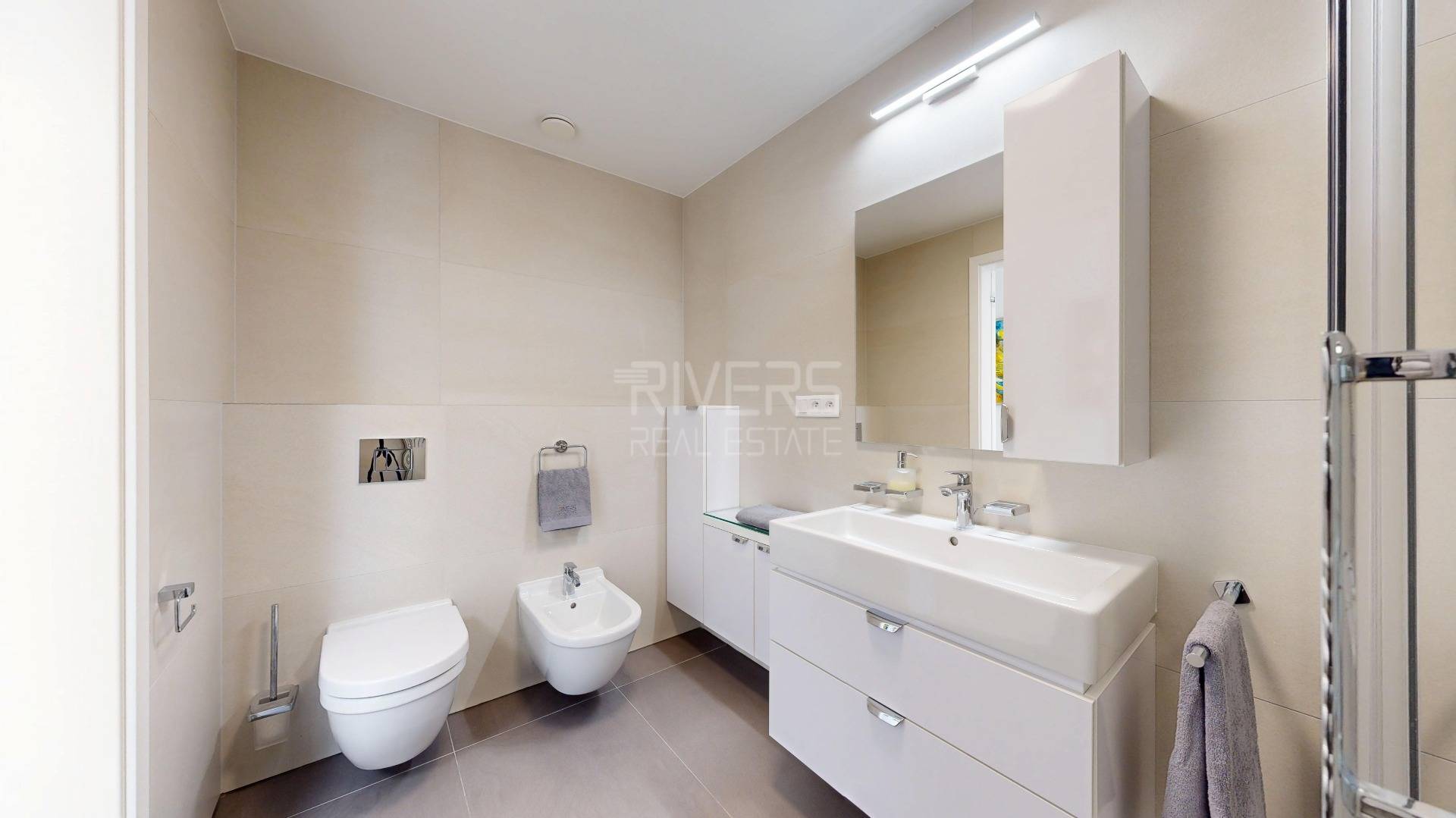 • Wooden floors, flush doors, bathroom with high-quality fixtures and tiling – above-standard finish by the developer, high-quality kitchen with premium Miele appliances and granite countertop with underlighting