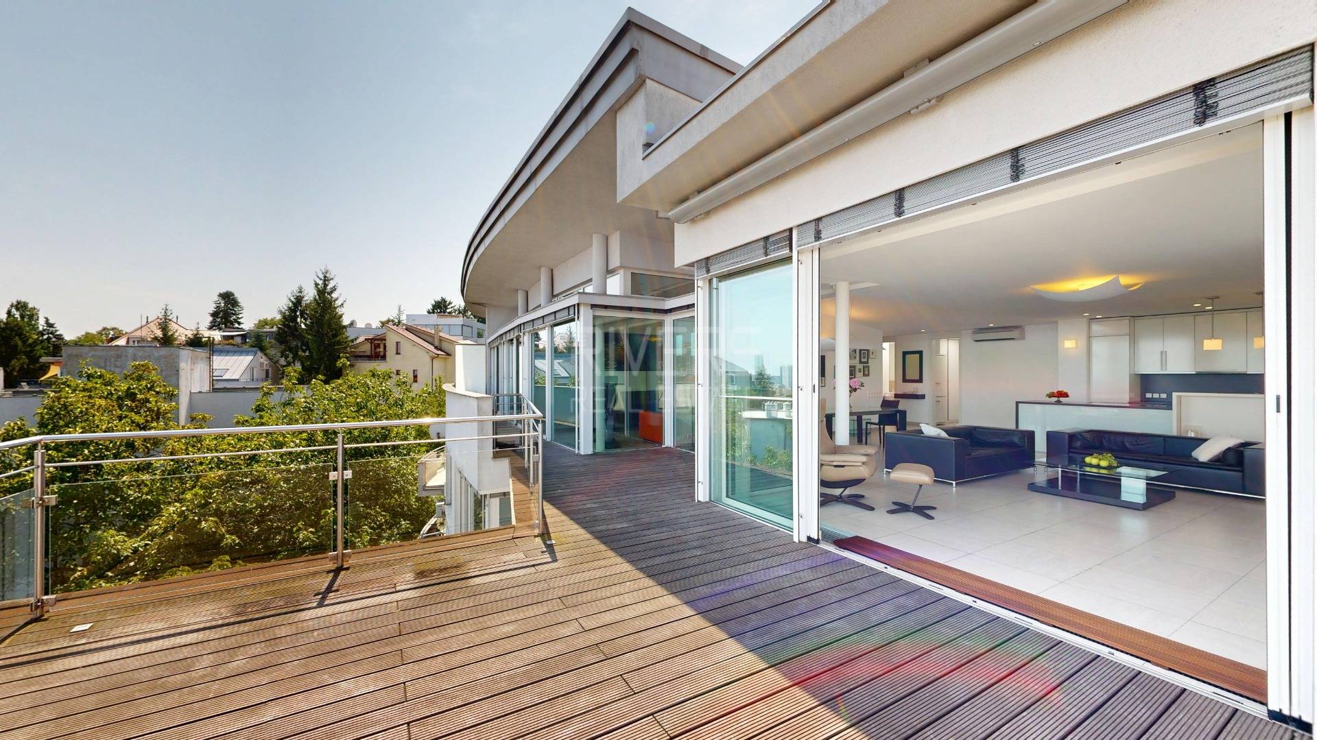 RIVERS REAL ESTATE agency is pleased to present for sale a luxurious, light-filled four-bedroom apartment beneath Slavín Hill, offering 244 sqm of living space and a panoramic terrace with breathtaking views over Bratislava.