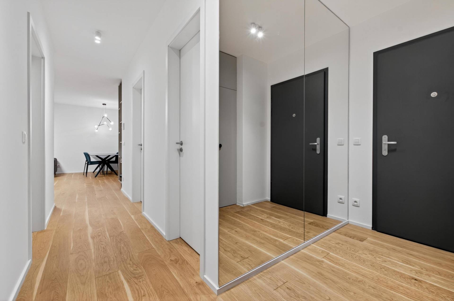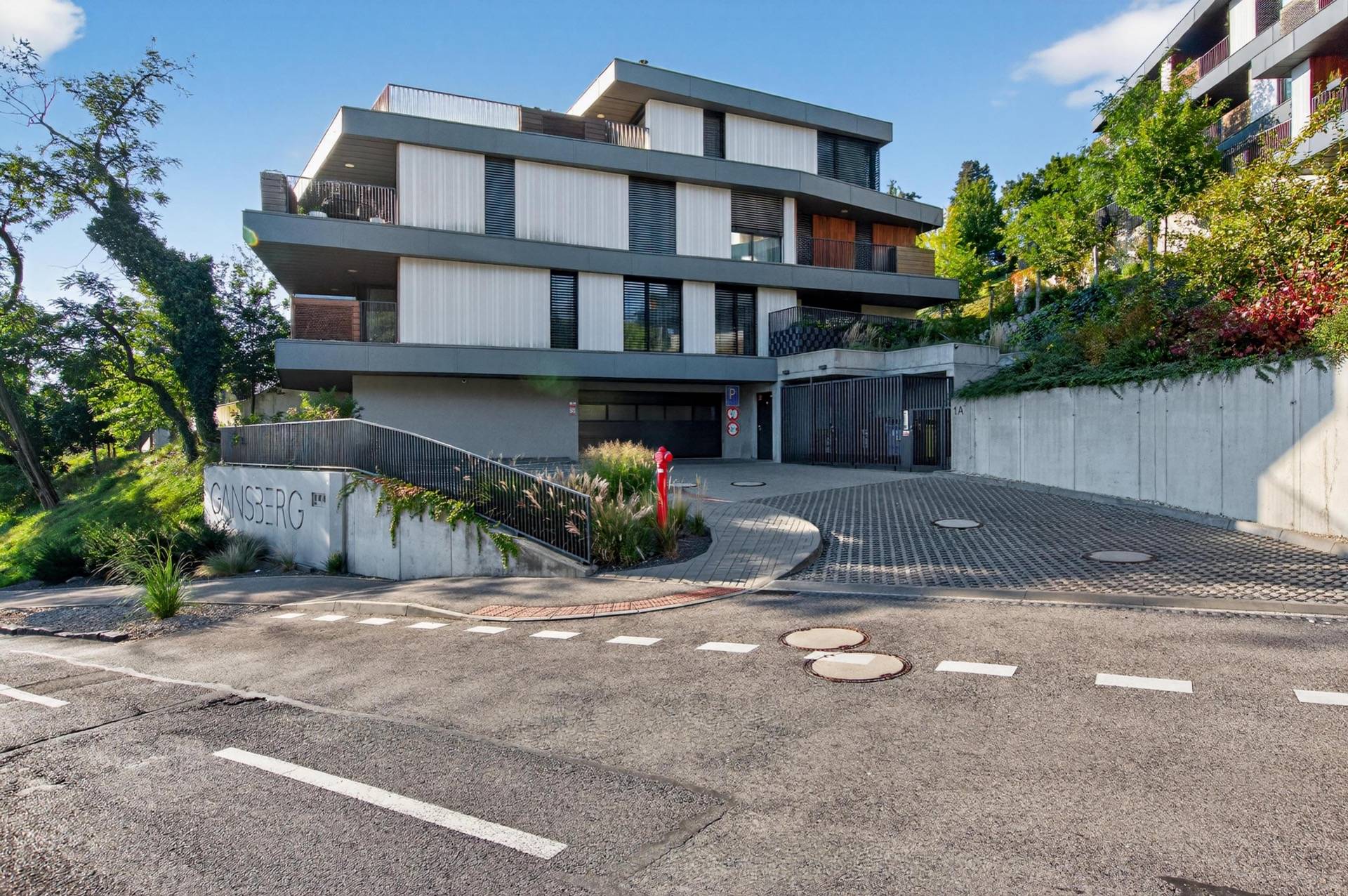 Gansberg Koliba offers a closed residential complex with a private park and children's playground, surrounded by greenery. The building has an energy certificate, a green roof, a shared bicycle storage room, and extremely low monthly utilities thanks to its low-energy standard. Residents benefit from a lift and direct indoor access from the garage to the apartment ("dry-foot access"), ensuring maximum comfort and barrier-free living.