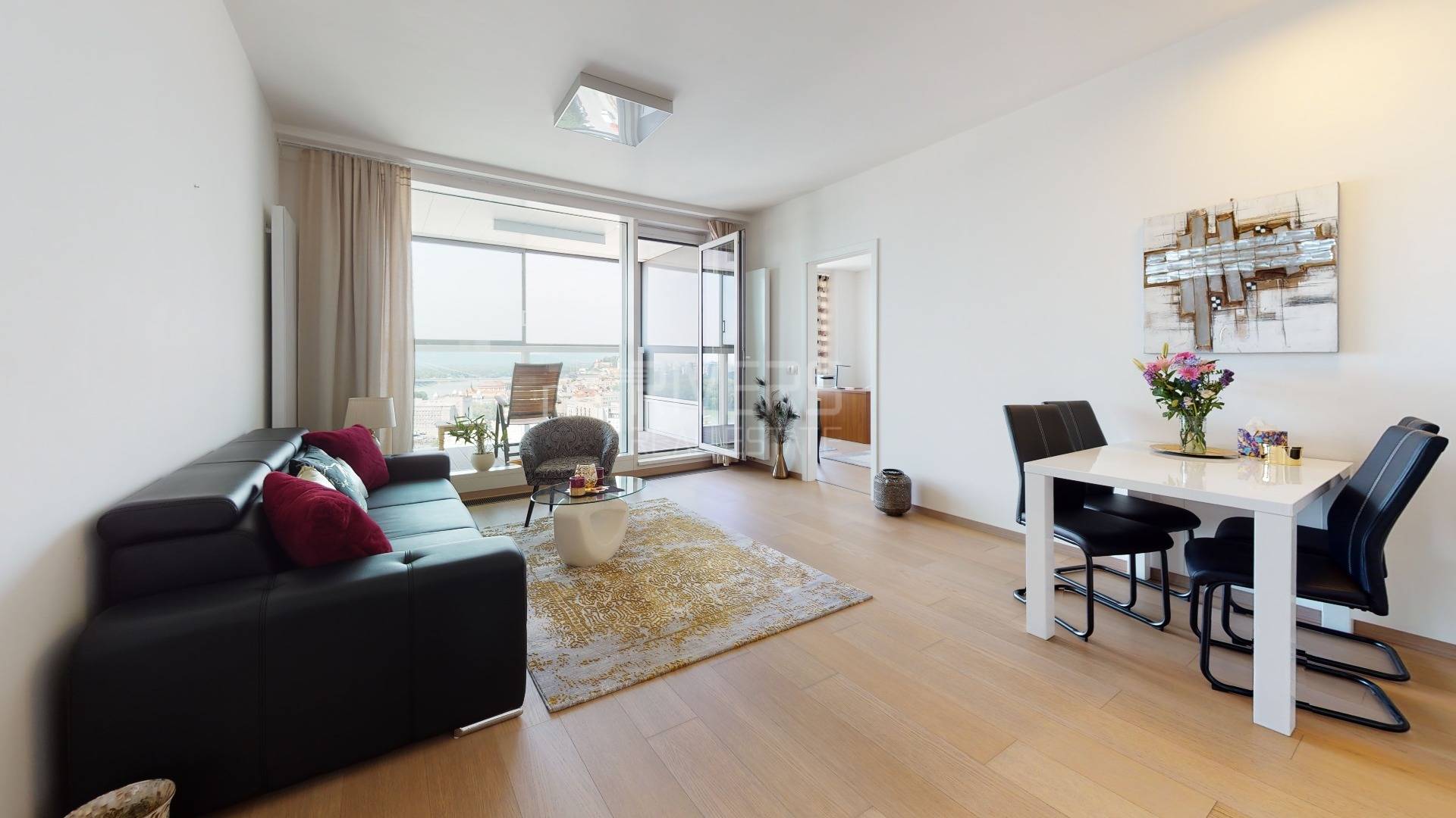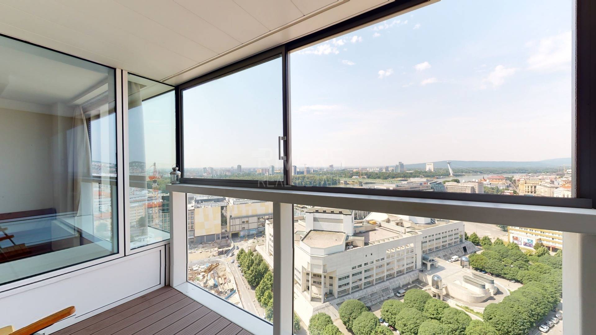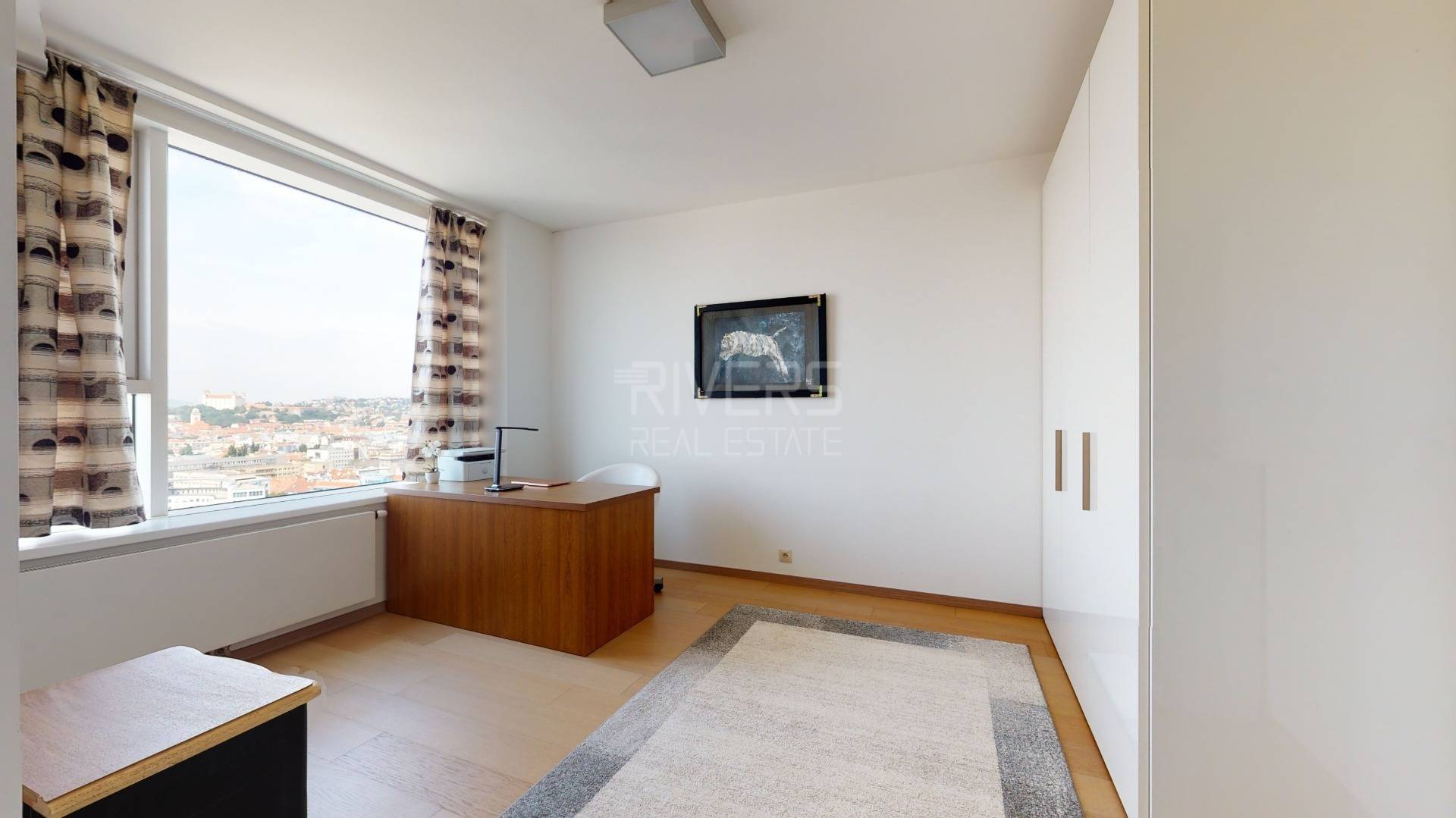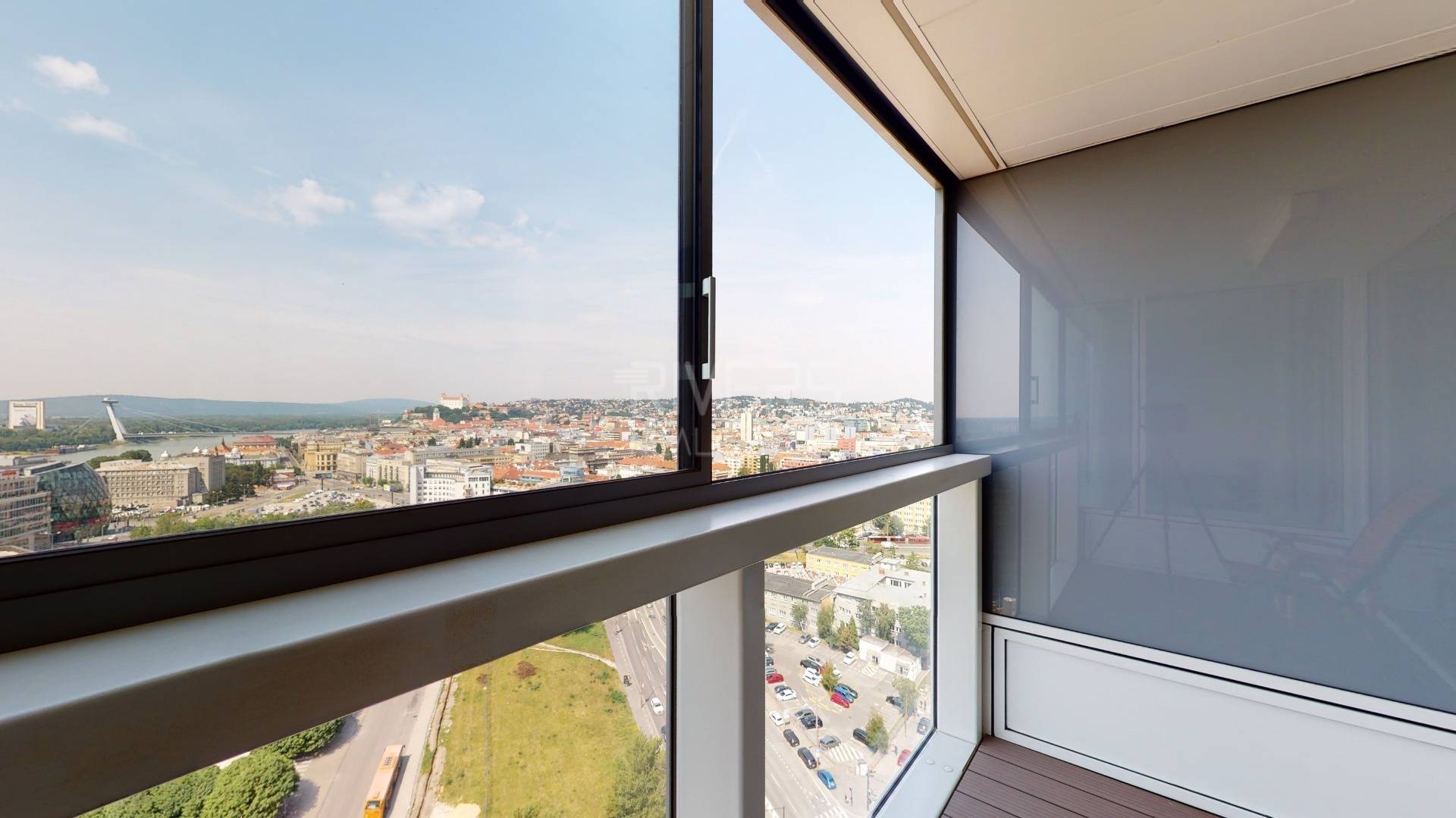 The RIVER REAL ESTATE agency offers for sale a modern apartment with two bedrooms in the Panorama City project. It captivates with stunning views from the 20th floor of Bratislava Castle, the Danube River, and the Old Town.