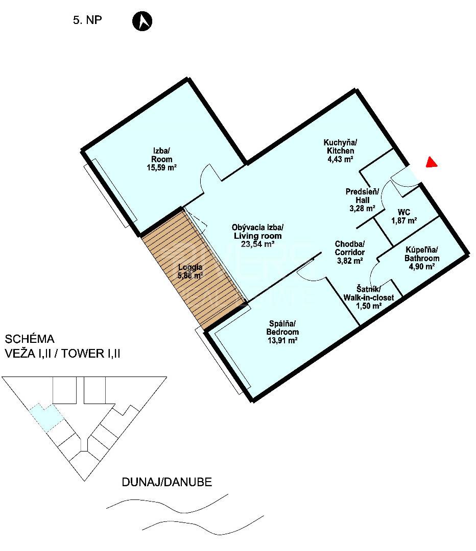 The Panorama City project is part of the modern architecture of the Old Town along the Danube riverfront and offers a combination of contemporary urban living with an excellent location centered around the Danube embankment. It stands out with its architecture, featuring two iconic triangular-shaped towers with 33 floors and a height of 112 meters.