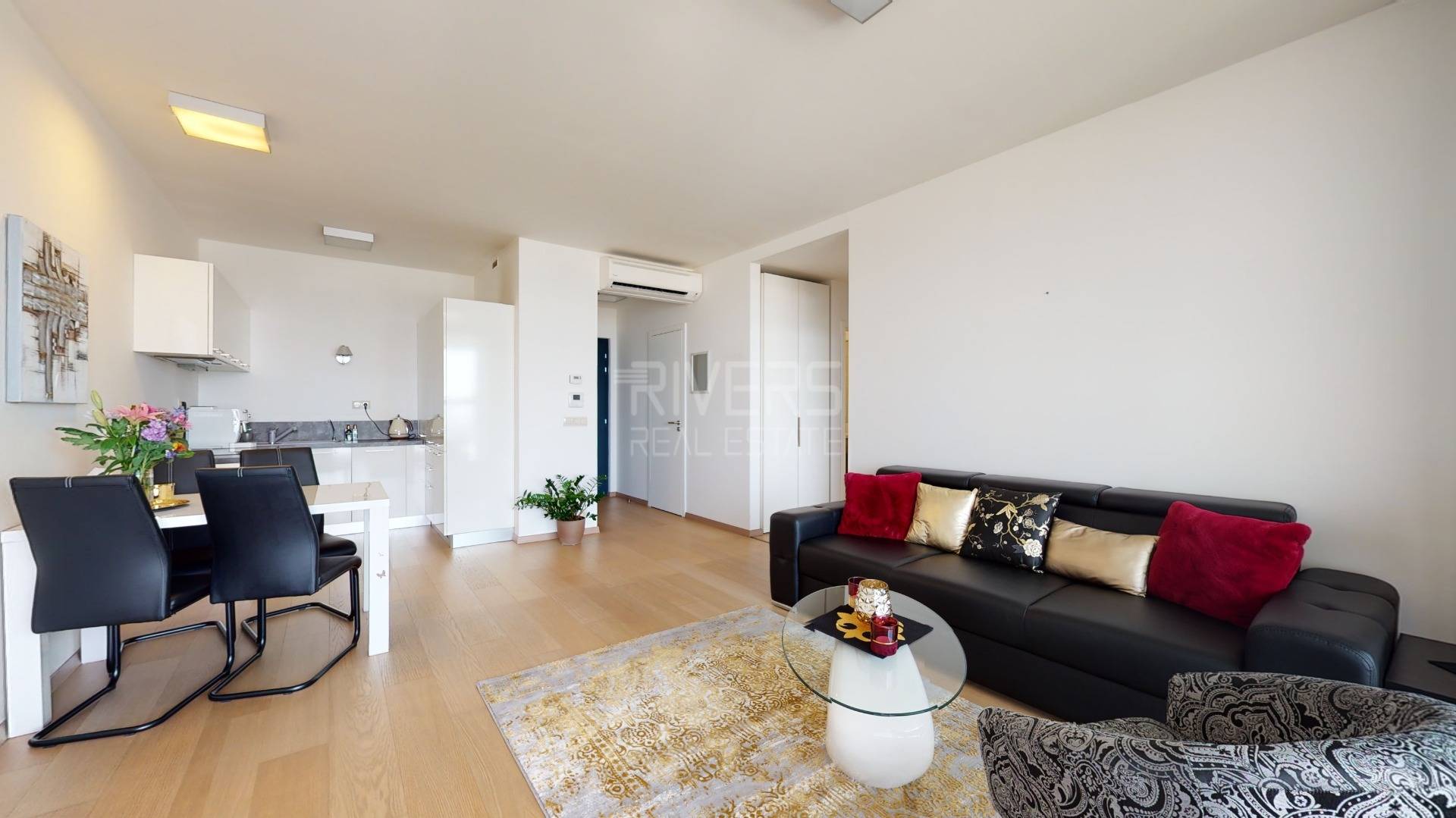 The development also includes high-standard office spaces, shops, cafés, restaurants, and a pleasant relaxation zone with greenery and a children’s playground. It is housing designed for modern cosmopolitan residents.