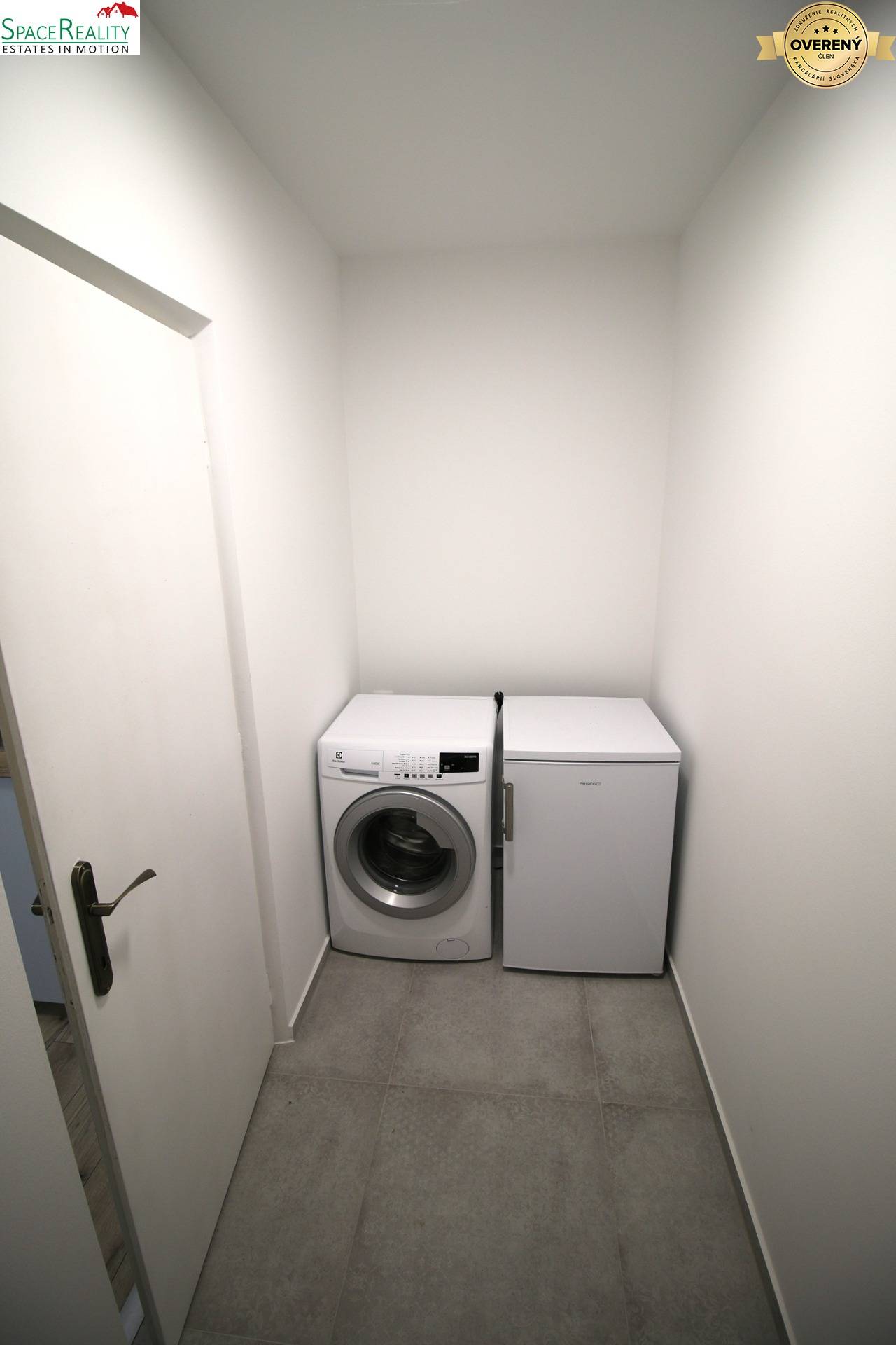 utility room next to the kitchen (refrigerator, washing machine)