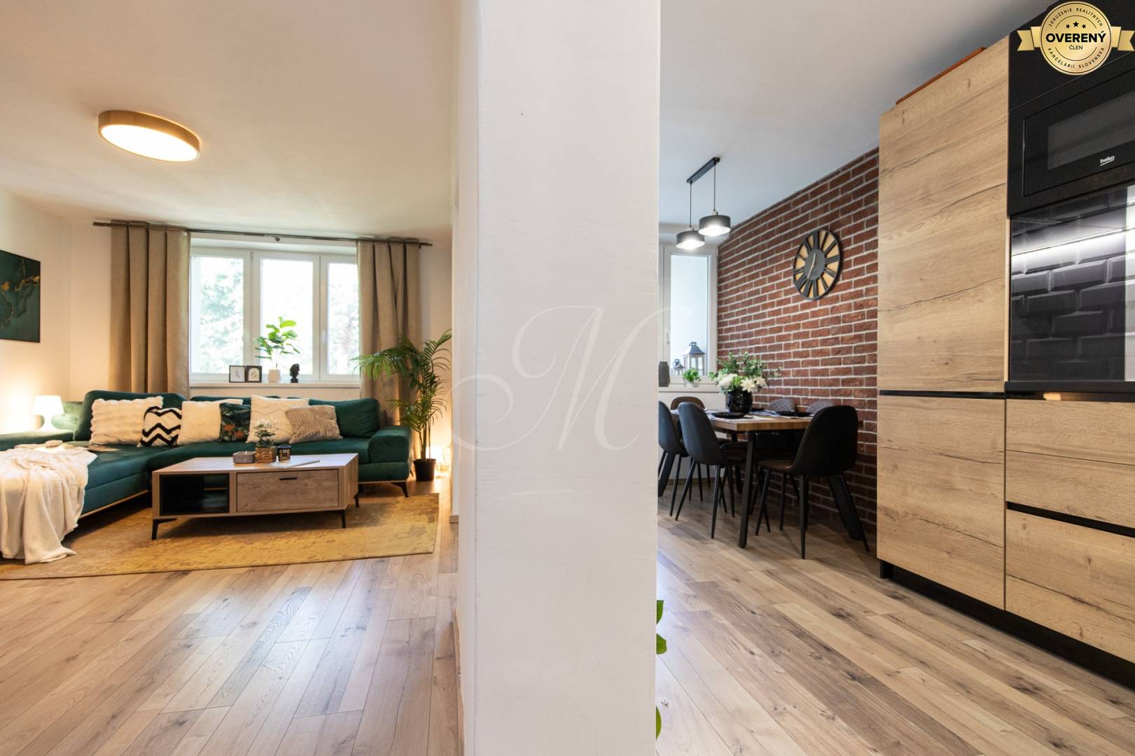 Completely renovated and furnished 2-bedroom apartment for sale (total area 71.35 m², usable area 68.35 m², + loggia 3 m²) in a brick apartment building without an elevator, situated in a quiet area of Podunajské Biskupice.