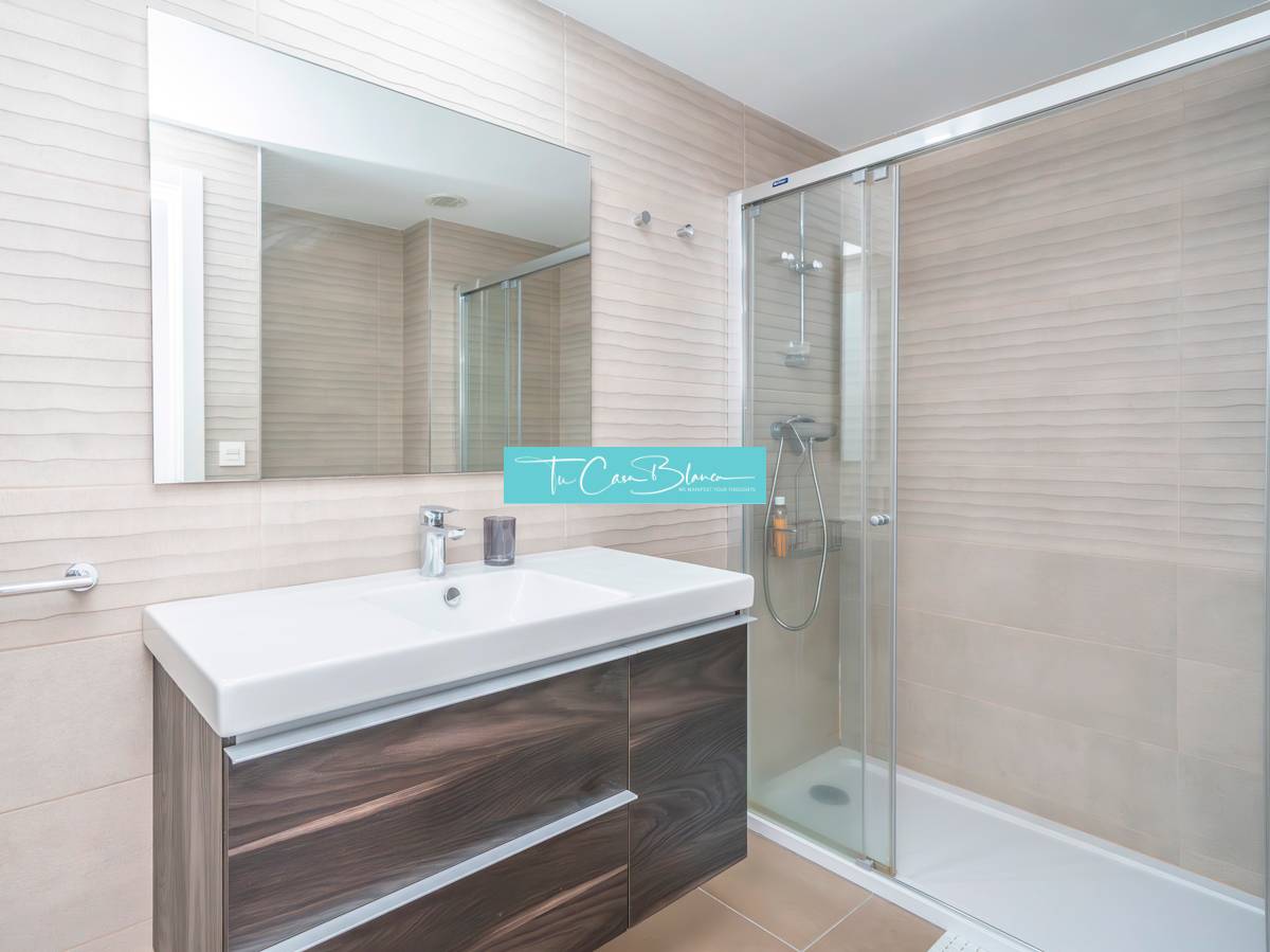 The layout is comfortable and functional: upon entering the property, you will find a bright living-dining room with direct access to a pleasant terrace, an integrated kitchen, two bedrooms, and two bathrooms. Its ideal orientation ensures natural light for most of the day.