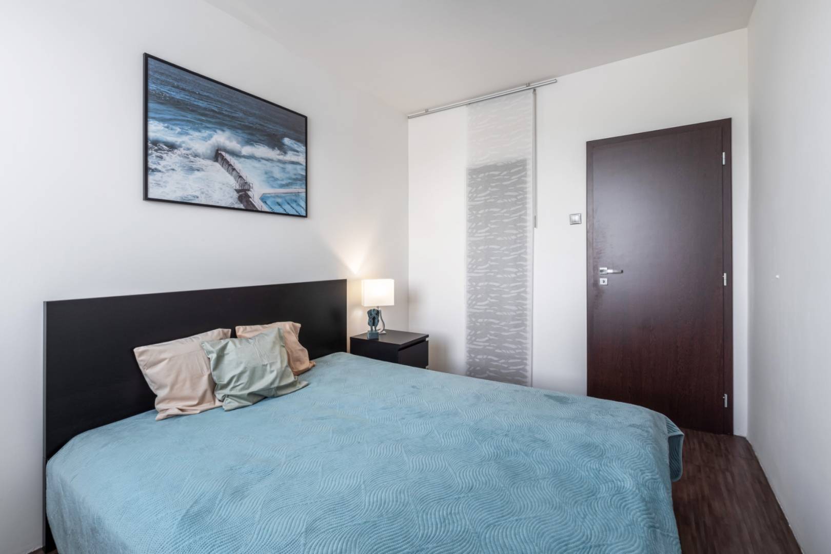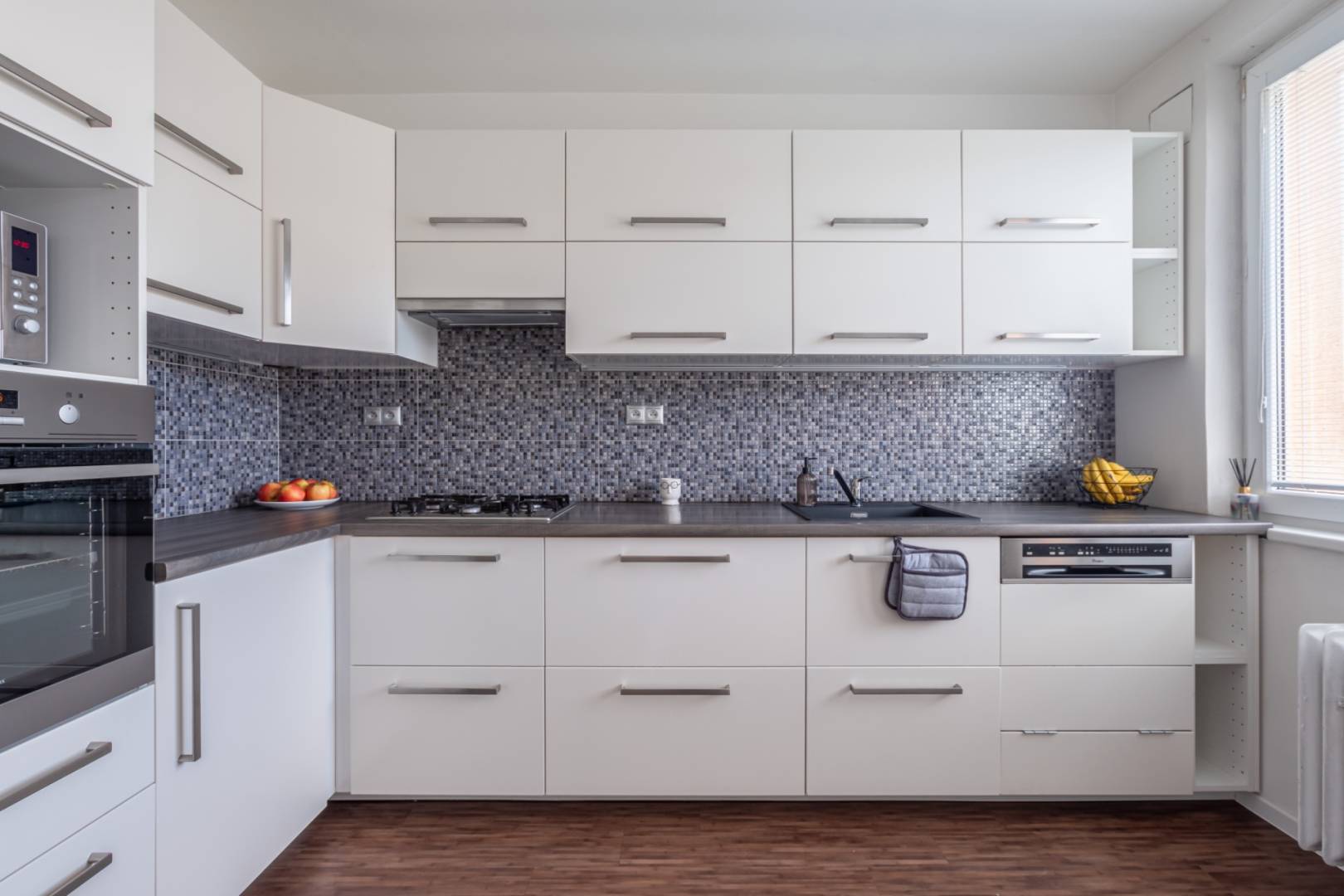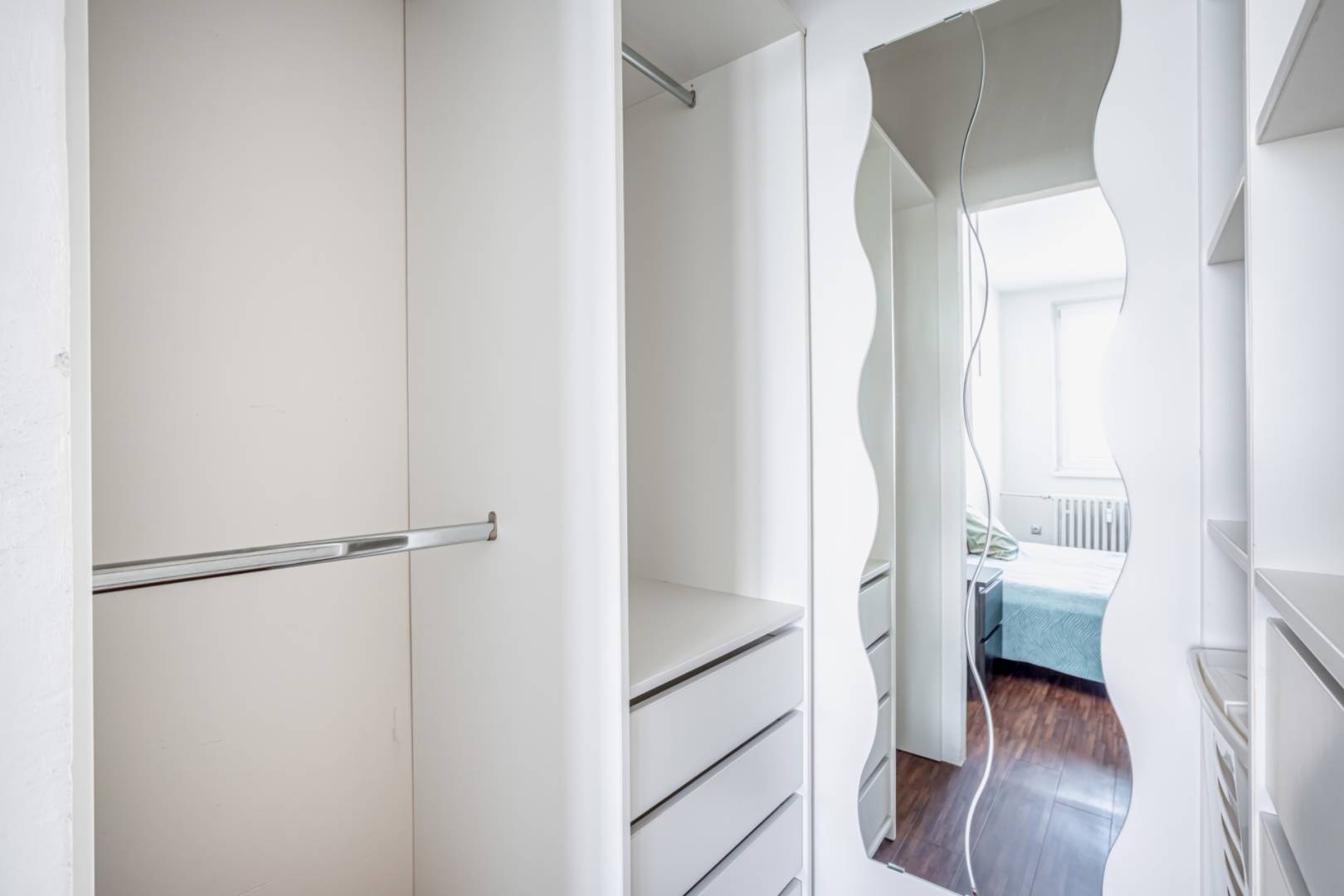 The living room with a loggia is spacious and offers space for a dining table and a work corner. The bedroom has its own loggia, facing east, which is perfect for a morning coffee with a view of the Castle and the Danube. The third room can serve as a children's room or office and is equipped with a practical wardrobe.