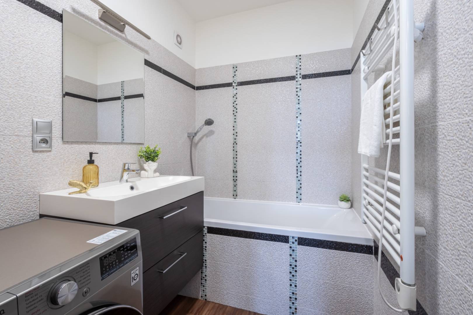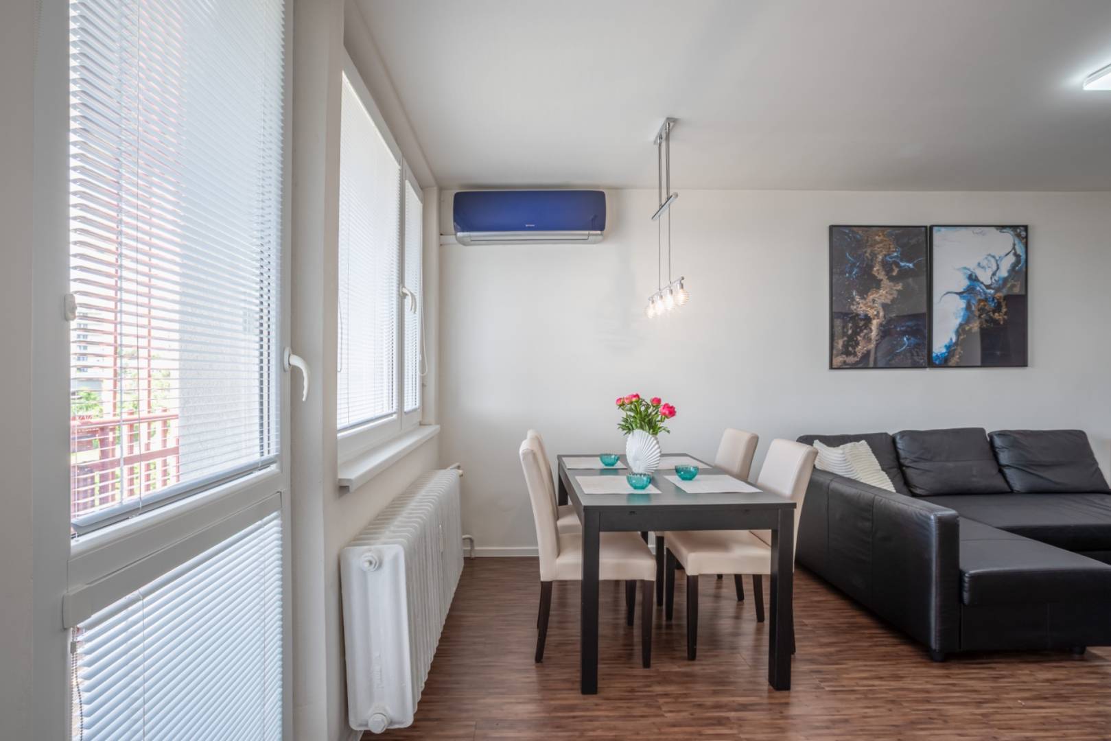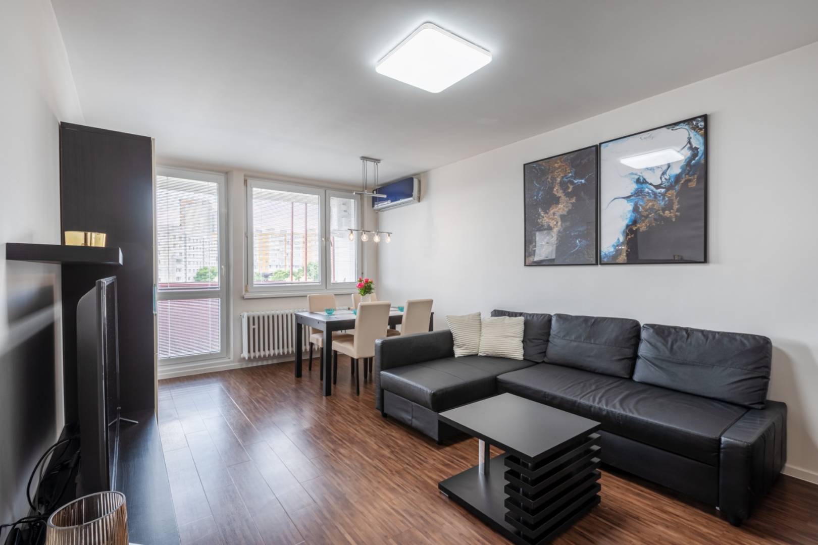 The apartment is equipped with a powerful air conditioning system, ensuring comfort even during hot summer days. The apartment building is in excellent condition, managed by a professional company, and has a healthy financial background. Monthly costs are efficiently set, which is a great advantage for future owners.