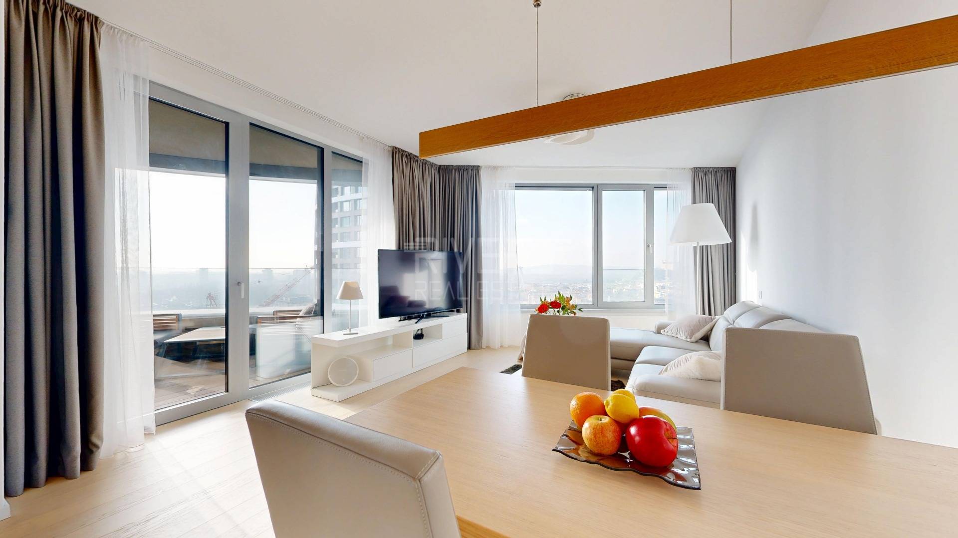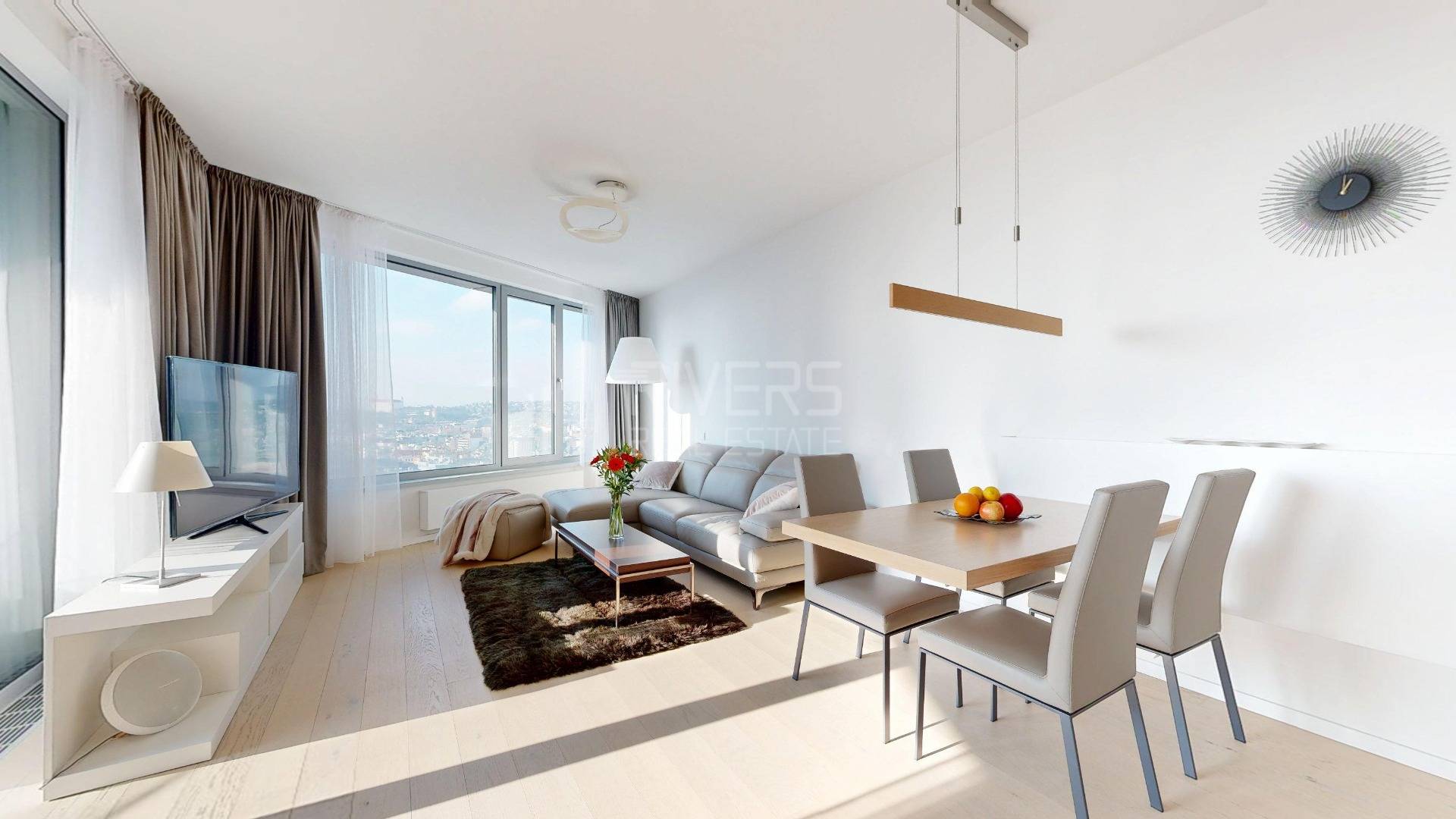 The real estate agency RIVER REAL ESTATE offers for sale an elegantly custom-furnished apartment on the 20th floor of the Sky Park project. The apartment offers an amazing view of the western city panorama and Bratislava Castle.