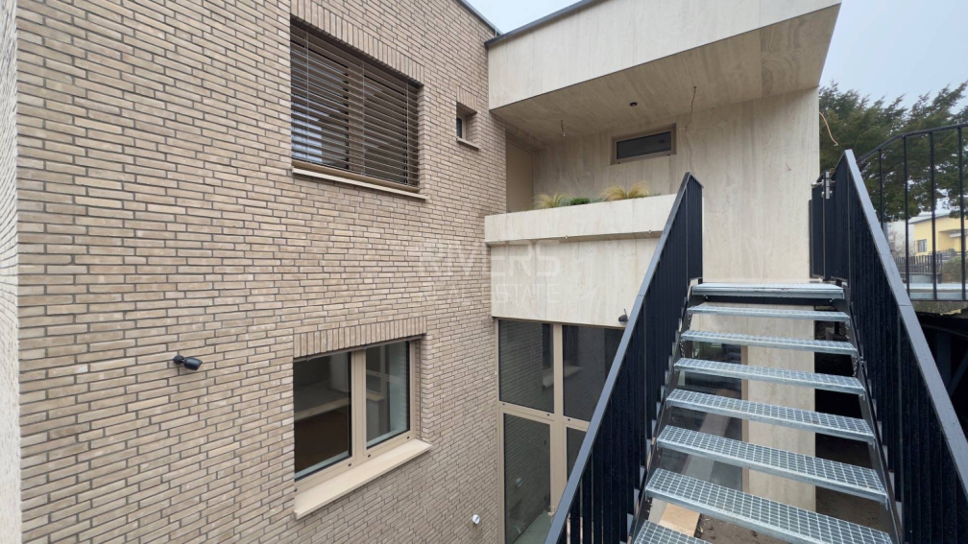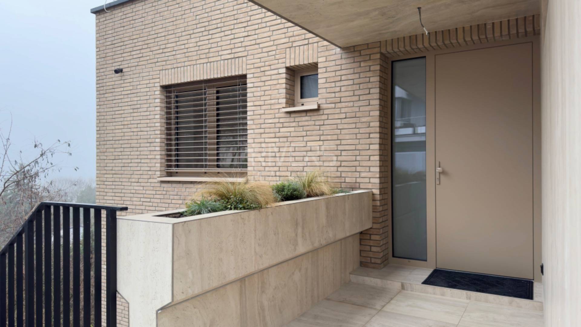 • The façade features a combination of facing brick, plaster, and large-format cladding.