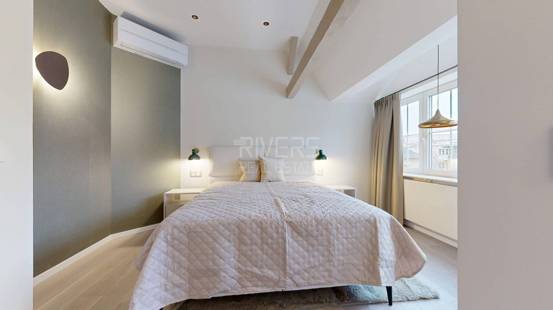 RIVERS REAL ESTATE offers for rent an exceptional, brand-new four-bedroom apartment located in the prestigious diplomatic district of Palisády, in the very heart of Bratislava’s Old Town. This property represents a harmonious blend of historic character, timeless design, and state-of-the-art technologies.